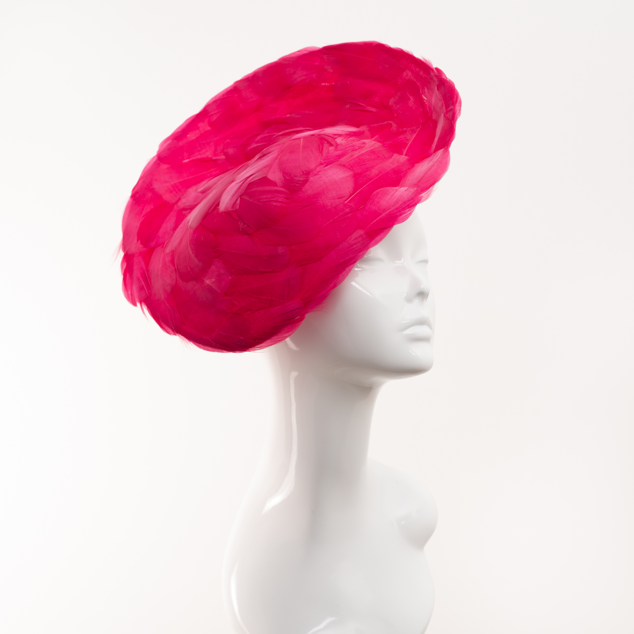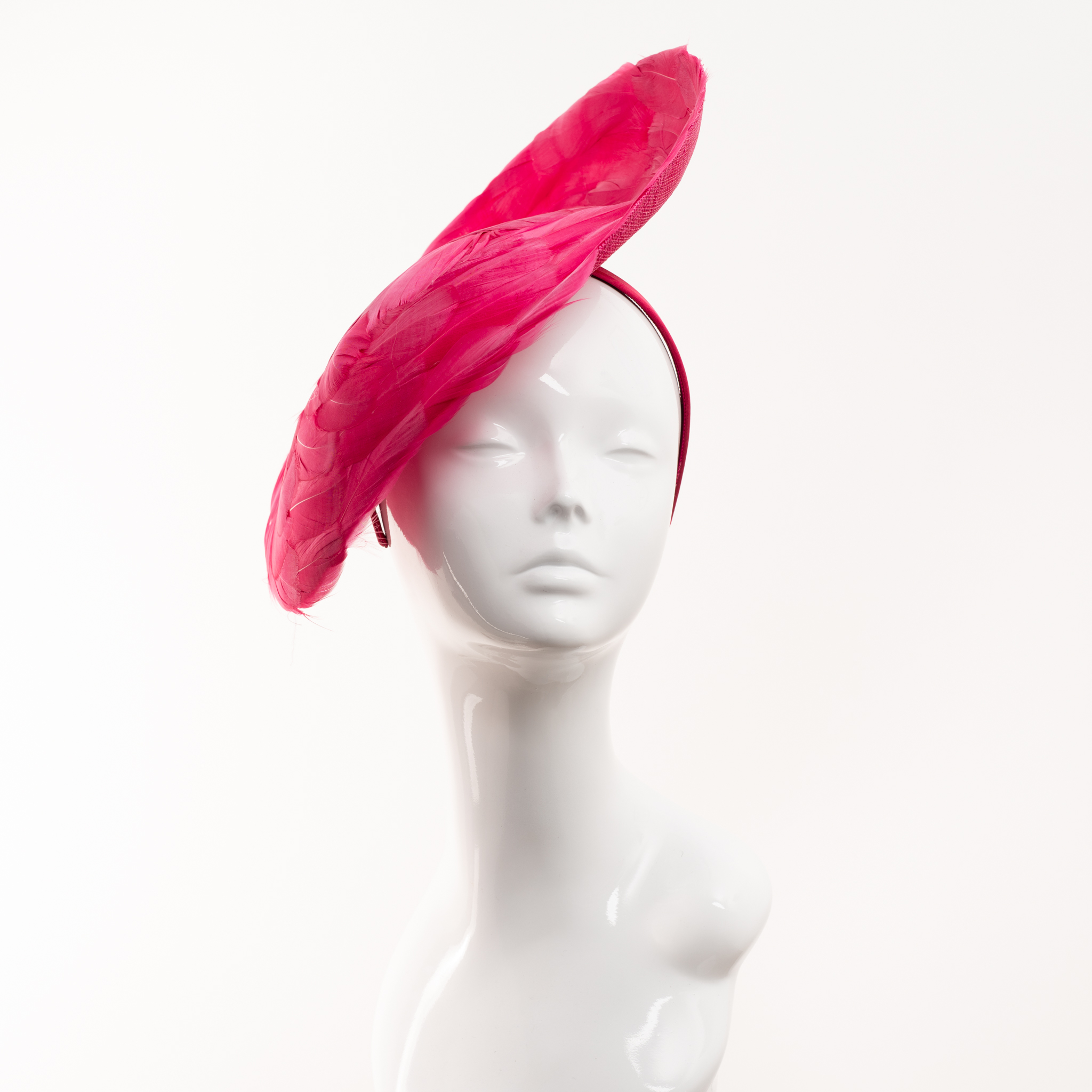 VCH ‘Gilly’ Headpiece with Raspberry Soft Flat Feathers. Raspberry Satin Headband.