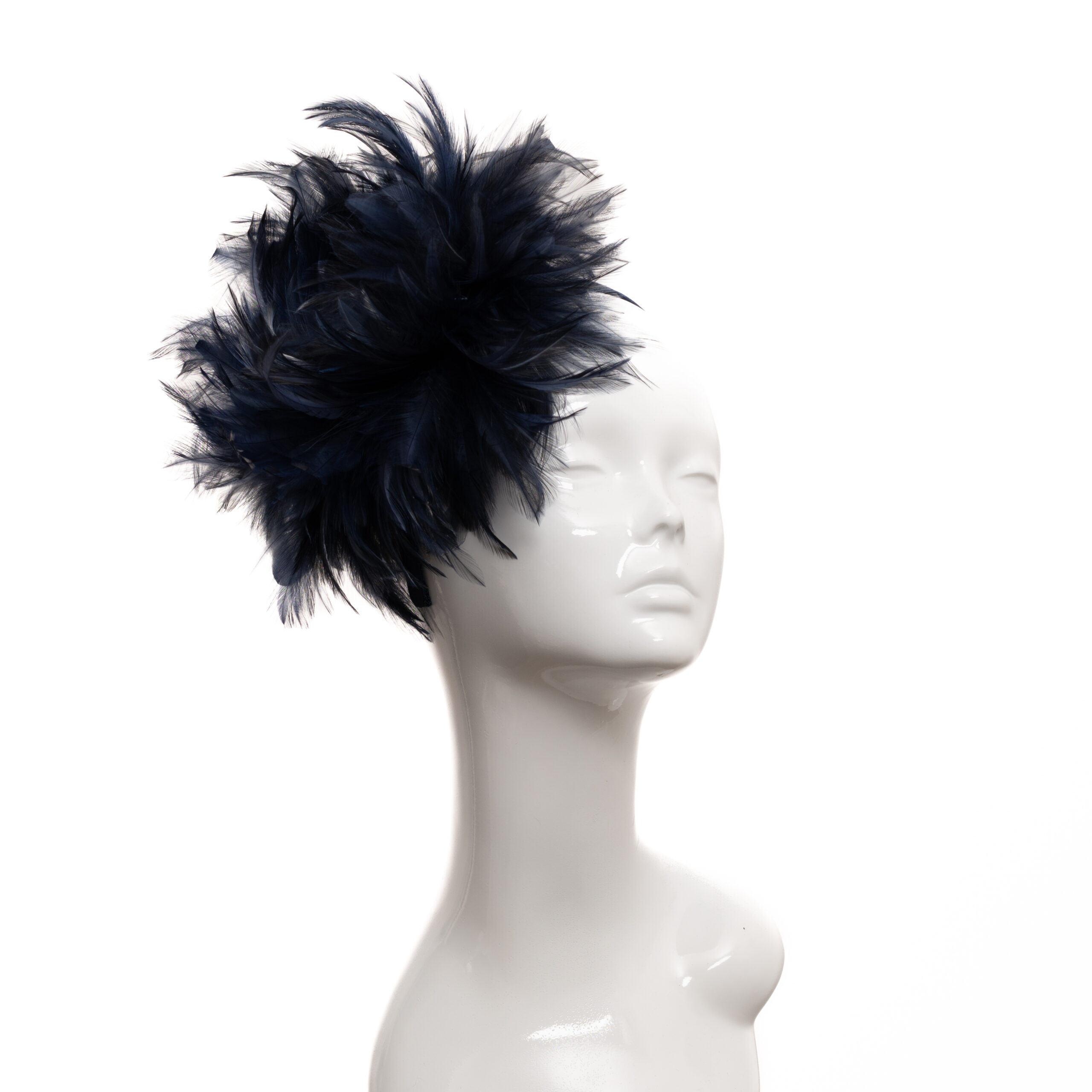 VCH ‘Betty’ Fluffy Headpiece in Navy. Navy Satin Headband.