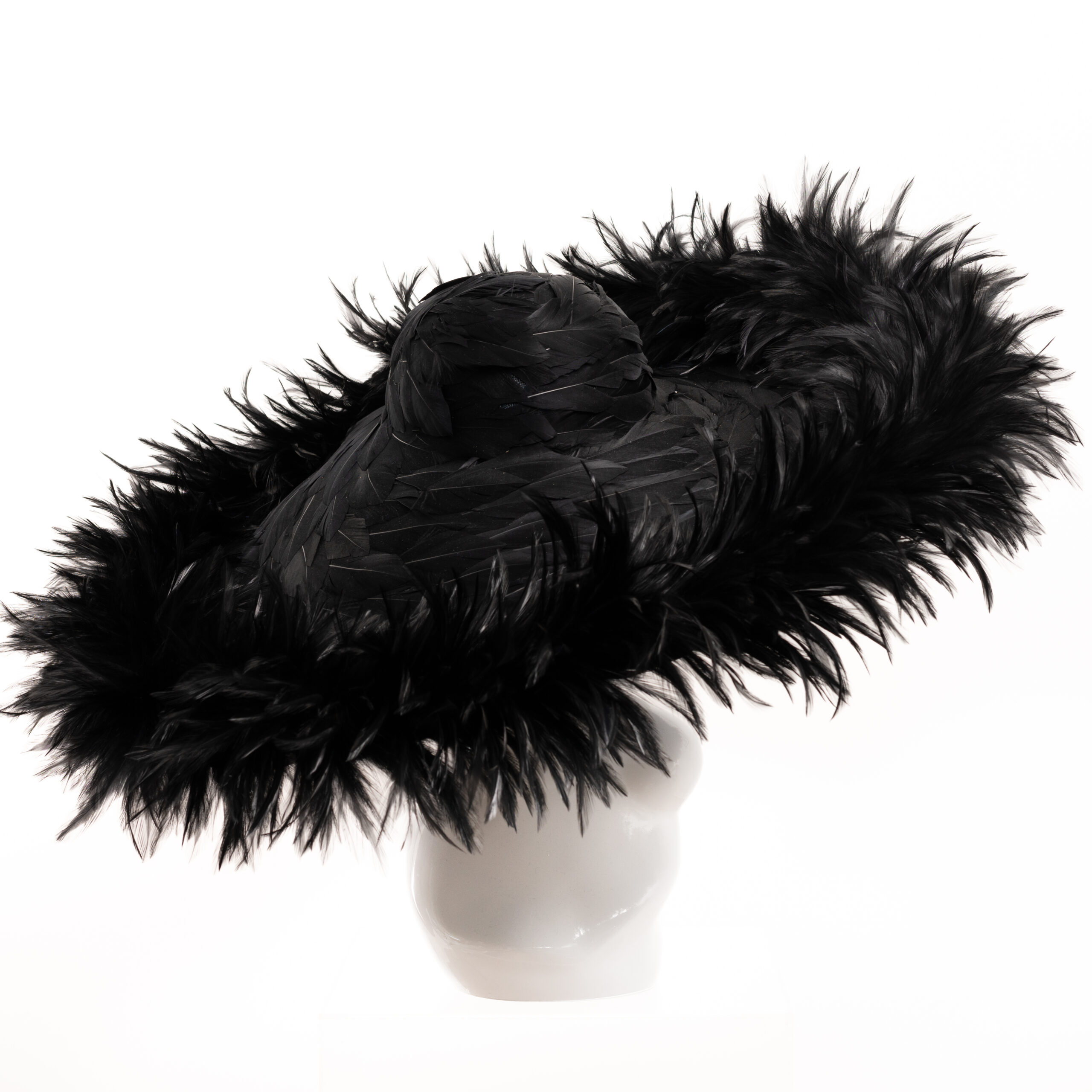 VCH XL Asymmetrical Headpiece with Black Flat Goose Feathers and Black Fluffy Feather Trim.
